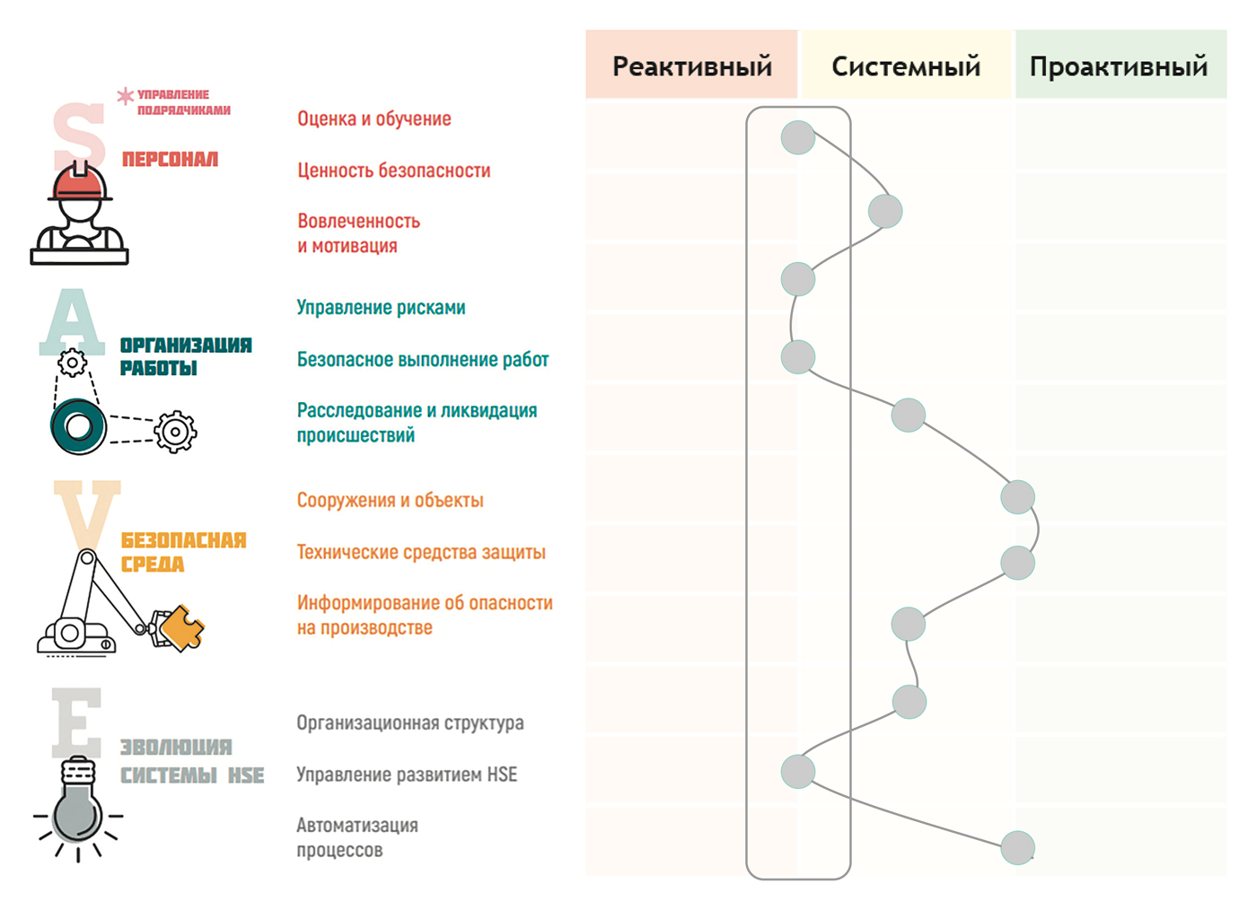 Диагностика культуры безопасности по методологии S*AVE — это инструмент, позволяющий понять реальное состояние культуры безопасности, выявить слабые места и создать четкий план по ее развитию до целевого уровня. Мы превращаем диагностику в точку старта осознанных изменений.