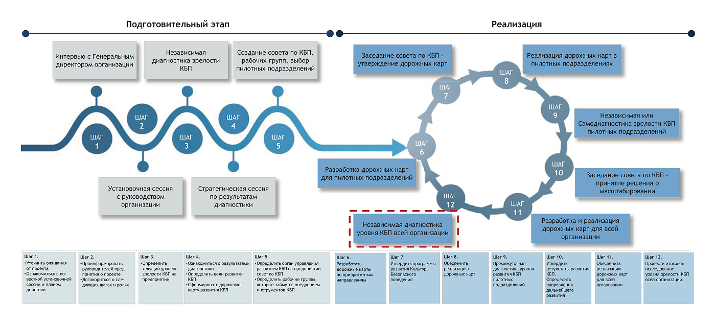 - Составление детального плана действий — «дорожной карты» трансформации культуры безопасности
